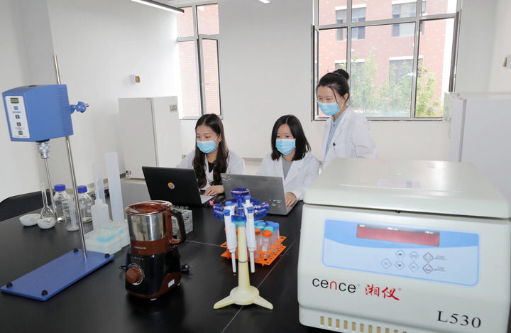 在天津科技大学科技园的一家初创企业内,工作人员在做实验。记者 赵子硕 摄
