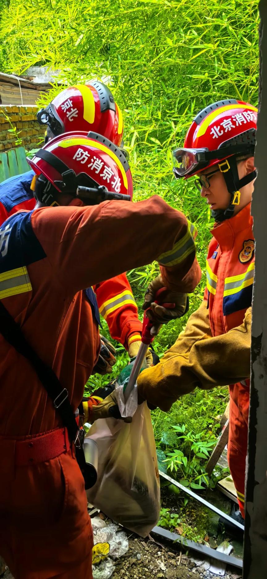 接到报警后,花市消防救援站立即响应,派出经验丰富的消防指战员携带专业捕蛇装备赶赴现场。抵达公园后,消防员根据报警人描述和现场勘察,很快在绿化丛中锁定了这位“不速之客”——一条体长目测约1.5米的蛇。面对消防员的专业处置,蛇很快被成功控制并装入专用收纳袋。成功将蛇捕获后并在远离人群的护城河区域将其安全放生,及时消除了安全隐患。